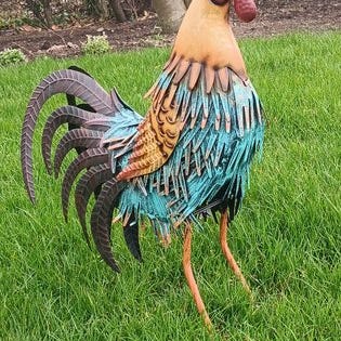 Kukkuva värikäs kukko, kokonaan metallistaAmmattitaitoisesti käsintehty, kokonaan metallistaSoveltuu sekä sisä- että ulkokoristeeksi.Koko: korkeus 58 cm, leveys 20 cm, syvyys 40 cm.Toimitetaan hyvin.