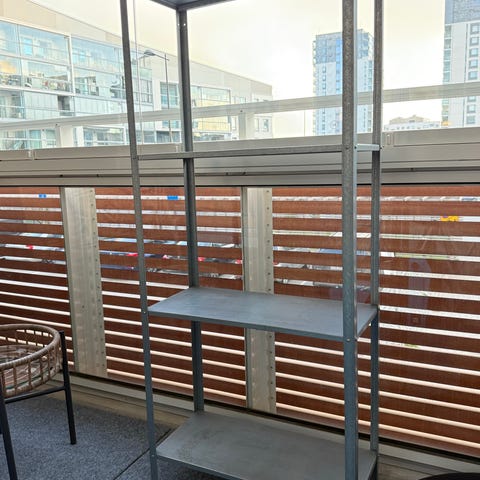 Julan varastohylly, jäänyt muuton jäljiltä ylimääräiseksi