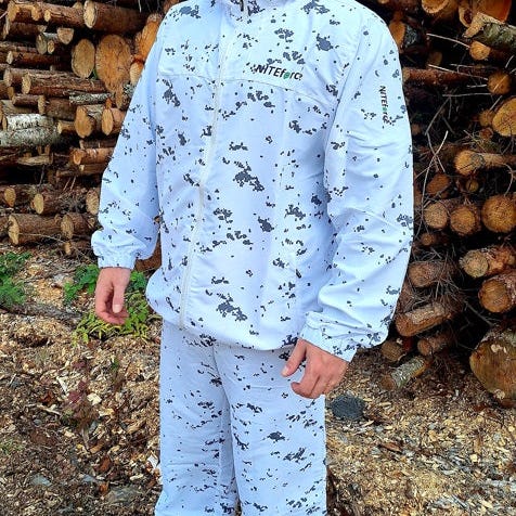 NITEforce LumiCamo kuoripuku muuttaa nykyisen metsästysasusi nopeasti talviseen maisemaan paremmin naamioituvaksi. Et välttämättä tarvitse talvikauteen muuta kuin kuoripuvun nykyisen puvun lisäksi! Kuoripuku maastoutuu erittäin hyvin maisemaan.