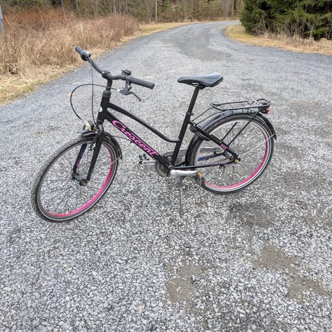 Crescent lasten polkupyörä 24" renkailla. Violetti runko ja turkoosireunaiset renkaat. Pyörässä on matala runko helpottamaan kyytiin nousua, tavarateline takana sekä lokasuojat. Varustettu Shimano Nexus 3 -napavaihteilla ja käsijarruilla. Soveltuu noin 24"-kokoista lastenpyörää tarvitsevalle ajajalle arki- ja koulumatkoille.