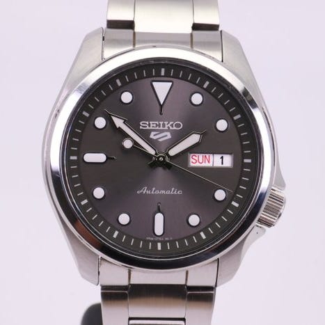 —// KUVAUS //—Malli: Seiko 5 Sports SRPE55K1 Grey Dial Men's Professional Automatic WatchAineisto: TeräsNauhan väri: HarmaaPohja: 39mm ( ilman etusäätimet )Koko: Kestää jopa 16,0 cm ranteen. Ei lisälinkkejä.Liike: Seiko 4R36 automaattinen liikeSäilyvyysaika: 40 tuntiaToiminnot: Ajan pitäminen, hacking, manuaalinen ja automaattinen winder, liukuva sekuntiviisari, hehkuvat kädet ja tuntimerkit, kaksikielinen päivämääräpyörä, päivä- ja päivämääräilmaisu.—// TOIMITUSPAKKAUKSET //—Alkuperäinen laatikko: EiAlkuperäiset paperit: Ei—// TILANNE //—Kasan kulutuksesta: * [Ei merkittäviä kulumismerkkejä runkoon. Pieniä karheita naarmuja]Takakannen kuluminen: * [minimaalinen karheus näyttökatteessa]Kiteen kuluminen: -(*) [ei näkyviä kulumia, mutta voi olla pieniä karheita naarmuja]Katto: -Kädet: -Kellon reunus: *(*) [minimialiharjamerkintöjä]Kruunu: * [pienillä naarmuilla]Ranneke tai hihna (mitoitus yllä mainittu): *(*) [Seiko S/S ranneke, 12 linkkiä kiinnitetty rannekkeeseen. Pienet naarmut]Korvakkeidenvaihtorungon mukaiset kellon nahkarannekkeet: - [koristema nahkarannekkeet mitoittavat 19,0 cm ranteen]TILANNE RATINGStandard:- None (Paras)* Hivenen merkitsevä** Pieni*** Keskivaikea**** Raskas***** Vaurioitunut (Worst)