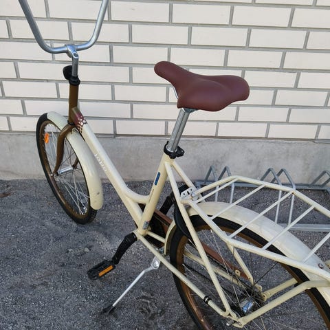 Jopo 24 " 3 vaihteinen ja kiinteällä lampulla. Käytön jälkiä, mutta täysin käyttökunnossa. Satulan takaosassa muutama viilto jälki repeämä ei haittaa käyttöä.