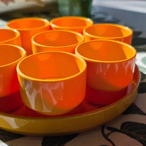 Hakusanat: retro, munakupit, muovi, värikäs, Paketoitava, Valmistaja, keittiötarvikkeet, suomalainen design, sarvis