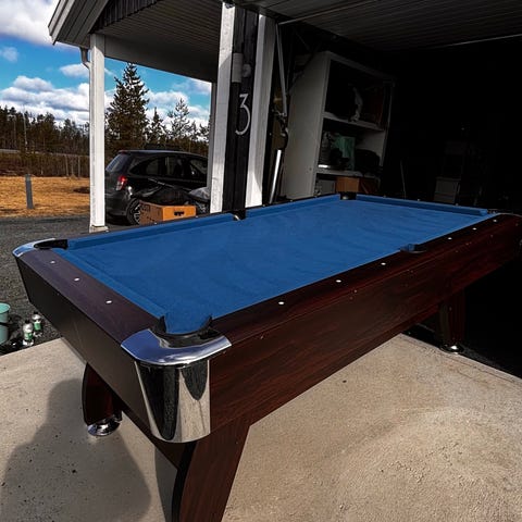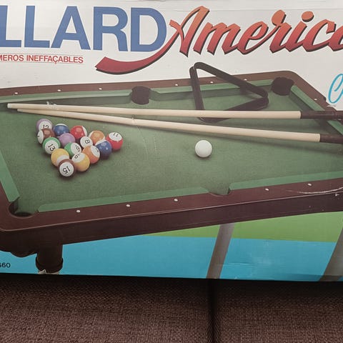 Monitoimi pelipöytä, jossa useita eri pelipintoja. Pöydässä on vihreä biljardikangas ja mukana tulee biljardipalloja, kolmio sekä muita tarvikkeita. Lisäksi pöydässä on pingispeliin sopiva alusta ja mailat, sekä lautapelipinta esimerkiksi backgammonille. Pöytä on puurunkoisella jalustalla. Soveltuu sisäkäyttöön vapaa-ajan peleihin.