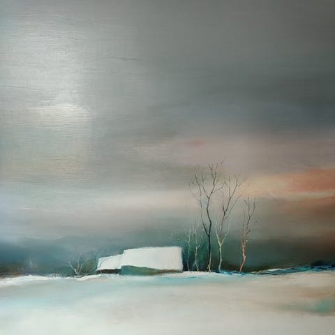 Chris Lobeto – Nykyajan lumimaisema – Suuri öljymaalaus kankaalleKuvausUpea öljymaalauksellinen teos, signeerattu Chris Lobeto, esittäen yksinkertaistetun ja ilmavan lumimaiseman.Kokonaisuus erottuu modernin minimalistisen lähestymistavan ansiosta: lumen peittämä laaja alue, eristäytynyt rakennus ja muutamat hoikkana kohoavat puut, jotka erottuvat pehmeässä sumussa. Koko kokonaisuus käsitellään hienostuneesti, kylmien ja sävyisten (harmaat, siniset, valkoiset) väripaletin sävyissä, mikä luo rauhallisen ja pohdiskelevan tunnelman.Aineen käsittely on erityisen mielenkiintoinen, taivaassa ja lumella näkyvine tekstuuriefekteineen, jotka tuovat syvyyttä ja rytmiä kokonaisuuteen.Ala oikealla oleva signeeraus.Takaosan merkinnät ja kirjoitukset näkyvissä (atelier-viitteet / numerointi).Vahva koristeellinen teos, täydellisesti sopiva nyky- tai pelkistettyyn sisustukseen.TekniikkaÖljy kankaalleMittauksetKorkeus: 65 cmLeveys: 54 cmKuntoErittäin hyvä yleiskunto.Kangas puhdas, värit hyvässä kunnossa.Ei näkyviä merkittäviä vikoja.ToimitusTurvallinen toimitus asianmukaisella suojauksella (vahvistettu pakkaus).Noudettavissa paikan päältä.#peinture #huile #tableau #artcontemporain #paysage #neige #minimalisme #decoration #artiste #toile #interieur #design #moderne #collection #art