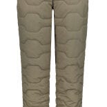 Naisten tikatut kevytvanuhousut kaikkeen talviulkoiluun sekä vapaa-aikaan. Normaali mitoitus. Alaspäin kapenevat lahkeet. Kaksi vetoketjullista etutaskua. Säädettävä vyötärö. Normaalikorkuinen vyötärö. Vyölenkit. Irrotettava vyö. Tuote sisältää REPREVE®-kuitua, joka on valmistettu 100-prosenttisesti kierrätysmateriaaleista, mukaan lukien käytetyistä muovipulloista. A.W.S. ACTIVE -tuotteen suunnittelussa on kiinnitetty erityistä huomiota toiminnallisuuteen ja mukavuuteen, joten tuote sopii sekä aktiiviseen että rentoon liikkumiseen. Sisältää kierrätysmateriaalia. Kankaan pinta on käsitelty vettä hylkiväksi. Tuulenpitävä materiaali pitää lämpimänä. Ohut ja kevyt mutta silti lämmin toppaus. Materiaali 100% polyamidi. Lahkeen sisäsauma (koko 38): 75cm.