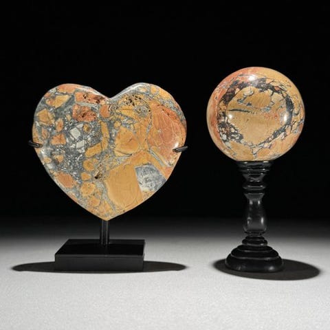 Kauniisti kiillotettu, puolikuun muotoinen kappale punaisesta Maligano Jasperista räätälöidylla jalustalla.Maligano Jasper on tunnettu elävistä ja monimutkaisista raidoitetuista kuvioistaan, jotka ilmentävät usein laajan värikirjon, mukaan lukien punaiset, oranssit, keltaiset ja jopa violetit. Tietty värimalli voi vaihdella suuresti kiven mukaan, tehden jokaisesta kappaleesta ainutlaatuisen.ARVIOITUT MITAT, mukaan lukien jalusta:Korkeus: 27,7 cmLeveys: 15,5 cmHUOMAUTUS> Huomaa, että nämä kuvat on otettu hämärässä studion tiloissa, värit voivat vaihdella ympäristön mukaan.> MAINITTU PAINO SISÄLTÄÄ PAKKAUSMATERIAALIN.LÄHETYSKappale toimitetaan seurantanumeron kanssa DHL Parcelin, DPD:n tai PostNL:n kautta. Seurantatieto päivitetään Catawiki-kohteeseesi, kun paketti on jätetty kuljetukseen.Tarkista säännöllisesti, ettei pakettiasi palauteta meille; tällöin ostaja vastaa toisen lähetyksen toimituskustannuksista.Espanjaan ja Portugaliin seurattavaksi käytä tätä linkkiä ja lisää Catawiki-kohteestasi saamasi seurantanumerohttps://clientesparcel.dhl.es/LiveTracking/HomeEMME YHDISTÄ KULJETUKSIA!!!Jos sinulla on kysyttävää paketista, ole hyvä ja ota meihin yhteyttä Catawiki-viestipalvelun kautta. Yritämme vastata kolmen työpäivän kuluessa.