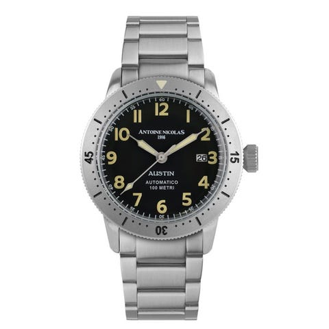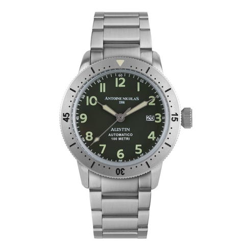 AUSTINSpirito libero. Eleganza senza confini.Kuin se teksasilainen kaupunki, joka inspiroi sitä, Austin-kokoelma syntyy niille, jotka haluavat erottua, eivätkä tingi sisällöstä.Kello, joka ilmentää täydellisen yhdistelmän kapinallisen sielun ja käsityöperäisen tarkkuuden sekä urbaanin viehätyksen ja amerikkalaisen vapauden välillä.Päätetyt linjat, hoikka mutta kova kotelo, teollisen muotoilun inspiroimat yksityiskohdat ja väripaletti, joka muistuttaa etelän kuumaa aurinkoa.Austin on suunniteltu niille, jotka haluavat elää jokaisen päivän persoonallisesti, ilman kompromisseja.Saatavilla vintage-nahkaremmin tai Milanese-ketju, se soveltuu kaikille tyyleille luonnollisesti.Kellotaulu, matta tai sunray-tyylinen, on koristeltu pystysuorilla indeksiä ja minimalistisilla osoittimilla, luminesoivan käsittelyn ansiosta näkyvyys optimaalisesti myös texasiläisten tähtien alla.Austin – AutomaatioKotelo: terästäViimeistely: harjattu ja satinatoituKierrekoriste: yksisuuntainen 120 napsautustaHalkaisija: Ø 43 mmLasi: mineraalilasiKruunu: ruostumaton teräs, ruuvikiinnitysTakakansi: ruostumaton teräs, ruuvikiinnitysKuvaus: matta tai sunray-kellotaulu, suuret ja opaaliset osoittimet sekä luminesoivilla lisäyksillä varustetut osoittimetKellotaulun värit: musta, sininen ja vihreäHihna: harjattua terästä, 22 mmNauha: nylonikankaasta, 22 mmSolki: deployant tai tangolla varustettuVesitiiviys: 10 ATMKoneisto: automaattinen TMI NH35HUOM. Rajoitetun erän numerointi on esitystavua, eikä välttämättä vastaa lähetettävää tuotetta.