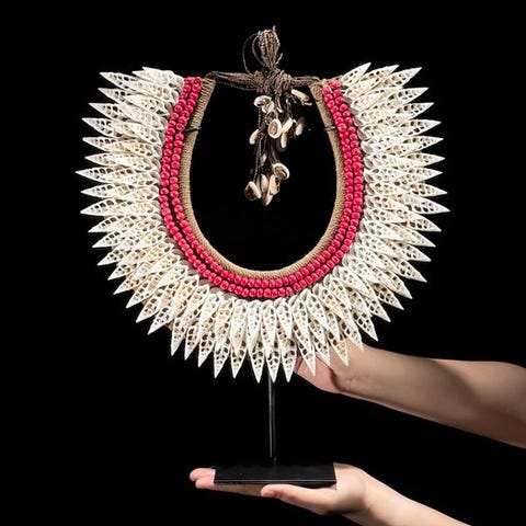 Koriste-esine - SN7 - Decorative shell necklace on a custom stand -