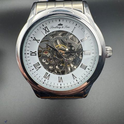 Lindberg&Sons Carpios skeletokello automaattikoneistolla- ruostumattomasta teräksestä valmistettu kotelo- automaattikoneisto- kotelon halkaisija noin 43 mm ilman kruunua- rajoitettu erä- 3 ATM vesitiivis- massiivinen ruostumattomasta teräksestä valmistettu metallinen ranneke, jossa perhoslukko- alkuperäinen laatikko takuukortilla varustettunakello on käyttämätön.- erinomaisessa kunnossa, käyttämätön- kuvat kuuluvat kuvaukseen- vakuutettu toimitus sisältyy