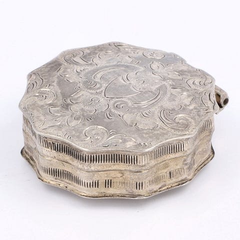 Kuvaus: Kaunis minttukotelo kaiverruksinAlkuperä: Schoonhoven, HollantiHopeaseppä: Simon Gaillard Jacz.Vuosi: 1864Tarkistusmerkit: leijona 2, Minerva, mestaritunnus, eTila: Hyvässä kunnossaPaino: 25.1 gLaatu: 833/1000Mitat: 2 x 5.2 x 5.2 cm*Kuvat kuuluvat kuvaukseenKuvannumero: A-13616Kaikki tuotteet lähetetään rekisteröidyllä postilla.Voit myös noutaa erän yhdessä yli 100 toimistostamme Alankomaissa, Belgiassa tai Saksassa.Käy Goudwisselkantoorin (NL ja BE), Comptoir de l’Or (BE) tai Goldwechselhaus (DE) verkkosivustolla nähdäksesi lähimmän paikan.Ilmoita toiveesi Catawiki-tililläsi.