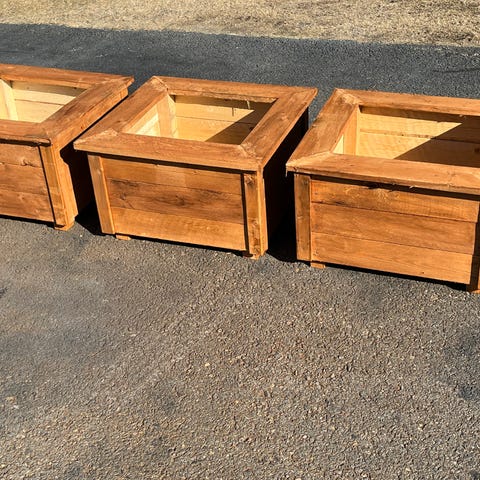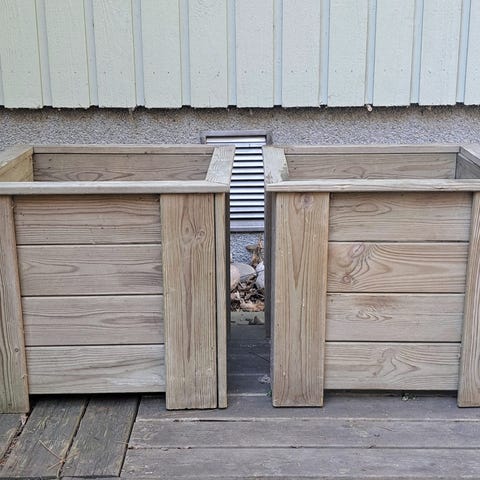 Myydään kukkalaatikoita pois autotallista (jääneet käyttämättä viimekesänä). Ulkomitat 55 x 55cm, korkeus 42cm. Ulkopinnat pohjamaalattu. Sisäpuolet käsittelemättömät. Hinta 40 euroa / kpl (mollemmat yhteensä 80 euroa). En varaile 2h pidemmäksi aikaa