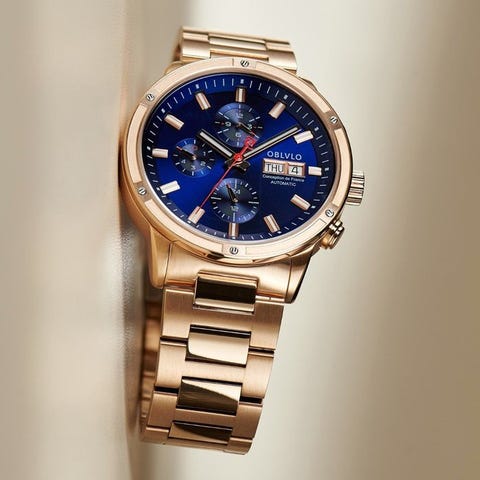 Oblvlo - Automatic - CALENDAR - Moon Sun - Tiffany Ice - Sapphire - NEW -