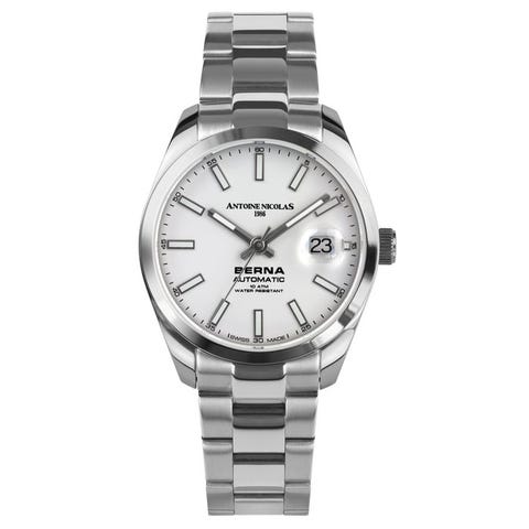 BERNA SWISS MADE RAJOITETTU ERÄ 100 KPLInspiroitunut sveitsiläisestä pääkaupungista Bernasta, Bernan kello heijastaa hienostunutta ja rationaalista eleganssia, joka koostuu täydellisistä mittasuhteista, oleellisista materiaaleista ja hiljaisesta huolellisuudesta yksityiskohdille. Kellotaulu, joka on suunniteltu niille, jotka arvostavat muodon ja toiminnan harmonian – ilman että luovutaan luonteesta.Sveitsissä valmistettuKotelo: Ø 39 mm, terästäPinnan viimeistely: kiiltäväKorkeus: 10 mmSaffeilasi: safiirilasi päivämäärän suurennuksellaKruunu: ruuvikiinnitteinenTakakansi: ruuvikiinnitteinenKuvaus: kiiltävä kellotaulu tai sunray-tyyppinen, päälle asetetut kiiltävät indeksit ja luminoivat insertit osoittimet: kupuillut kiiltävät luminaativan insertin kanssaRanneke: kiinteä teräs, 20 mmLukko: terästäVesitiiviys: 10 ATMTilaus: Landeron L24, Ø 26 mm, 25 jalokivestä, taajuus 28’800 vib/ht, korkeus 4,80 mm