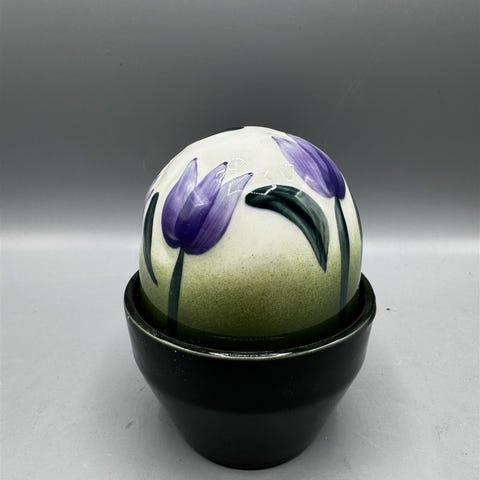 Arabian valmistama kukkakuvioinen iki-kukka rasia. Rasia koostuu kahdesta osasta, joissa on violetteja tulppaani kukkakuvioita.