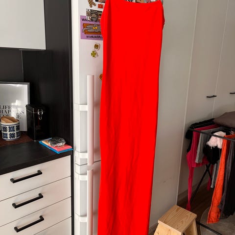 Bershka juhla- tai cocktailmekko naisille. Koko M. Mekko on väriltään punainen ja valmistettu polyesteristä. Malli on vartaloa myötäilevä ja pitkä, takana halkio helmassa. Sopii juhla- ja iltatilaisuuksiin.