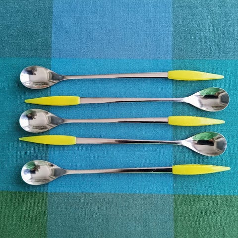 Puoli tusinaa hyväkuntoista 70-luvun jätskilusikkaa. Pituutta noin 19 cm. Nouto Itiksen vierestä tai postikulut kirjeenä ostajalle. Nopea postittaja. Yhdistän paketit pyynnöstä. Katso muutkin ilmoitukseni, runsaasti retroa, vintagea sekä vuosien varrella astiahullun kaappeihin keräiltyä kivaa tavaraa myynnissä. Kaapista löytyy myös toinen samanlainen erä