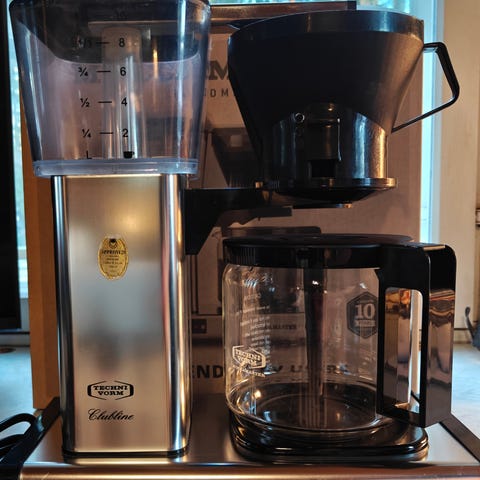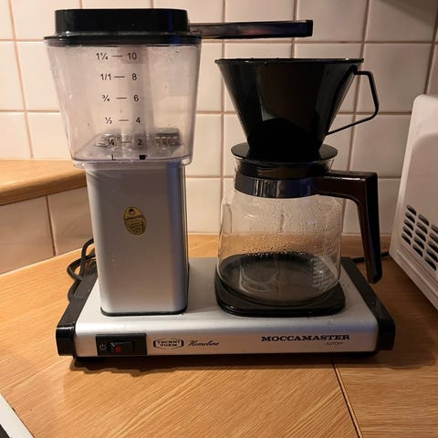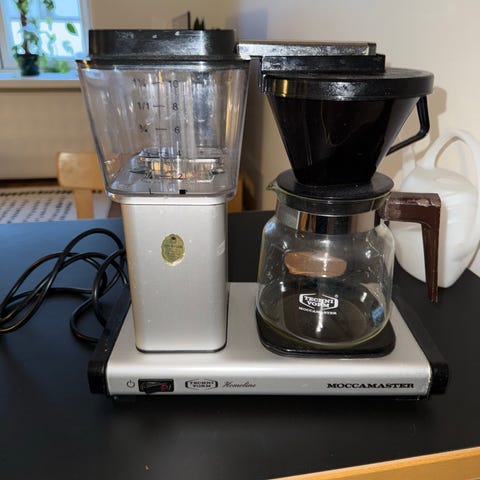 Moccamaster kahvinkeitin lasikannulla.