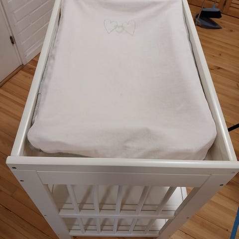 Yhdellä lapsella käytössä ollut hyväkuntoinen hoitopöytä. Kuvissa näkyvän hoitoalustan saa halutessaan mukaan.
