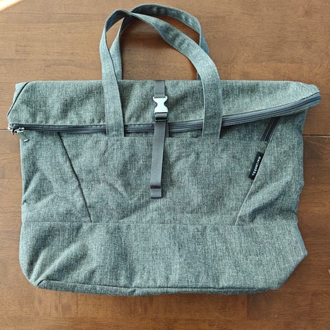 Tilava ja yksinkertaisen tyylikäs Marimekon laukku. Jokseenkin käyttämätön. Laukussa on tumman pellavan värinen kangaspinta ja vetoketjusuljenta. Sisäpuolella vetoketjullinen vuorattu tasku ja kaksi muuta taskua pientavaroille.Sivutaskussa on nauha, jolla laukkua voi madaltaa. Mitat: Leveys ylhäältä 52cm, pohjasta 36cm, korkeus 46cm.