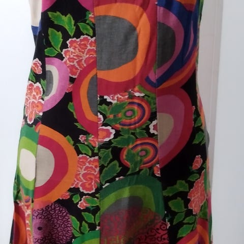 Myytävänä upean värikäs hyväkuntoinen tumma pohjainen Desigual merkkinen neuletakki kokoa L. Kainalokainalo mitta 56 cm. Kuvan malli on kokoa 44-46. Neuletakissa on silkkinen ohutvyö joten sen voi solmia vyötäröltä kiinni. Materiaalina polyester ja villa.