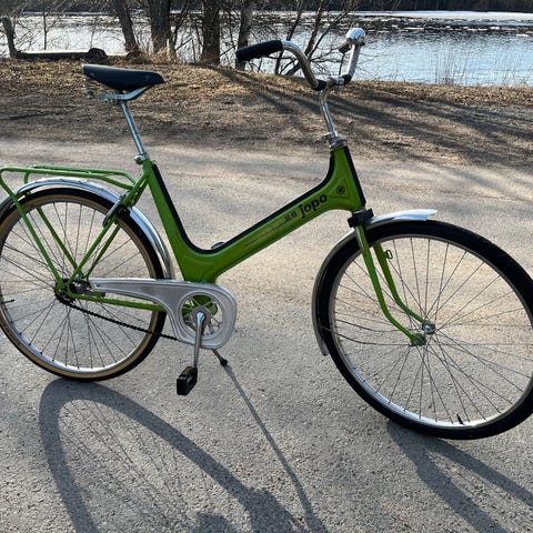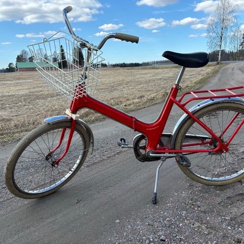 Retro Jopo 70-luvulta, 22” renkaat, runkokoko nyky-Jopoa hieman pienempi, sopii parhaiten nuorille tai ei-pitkille. Runko joskus ylimaalattu.