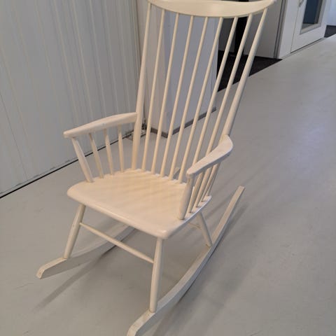 Hakusanat: sisustus, keinutuoli, maalaistalo, huonekalut, rustiikki, perinteinen, käytetyt huonekalut, valkoinen tuoli