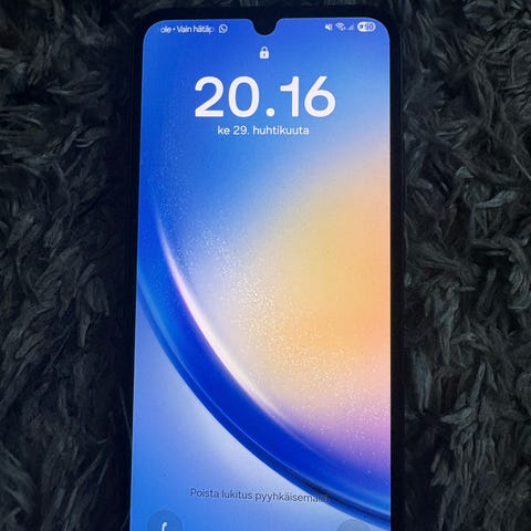 Samsung Galaxy A 15 5g 128 GB tallennustilalla ja todella hyvällä akunkestolla. Ollut todella vähäisellä käytöllä. Värinä mustasininen. Ei huomattavia vaurioita. Puhelimessa on kosketusnäyttö, etukamera sekä takana kolmiosainen kamerajärjestelmä ja salama. Laitteessa on Android-käyttöjärjestelmä ja se soveltuu yleiseen älypuhelinkäyttöön, kuten puheluihin, viestintään, sovellusten käyttöön ja valokuvaukseen. Tallennustila 128 GB mahdollistaa sovellusten, kuvien ja videoiden tallentamisen laitteelle.