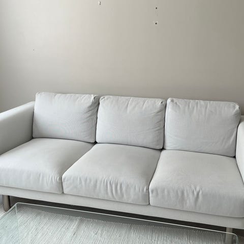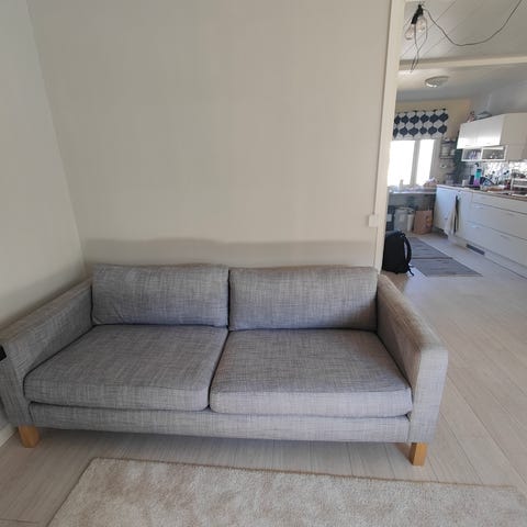 Myydään 3:n istuttava sohva. Irrotettavat ja pestävät päälliset. Käsinojissa hieman tummentumaa. Muuten ehjä ja hyvä sohva.