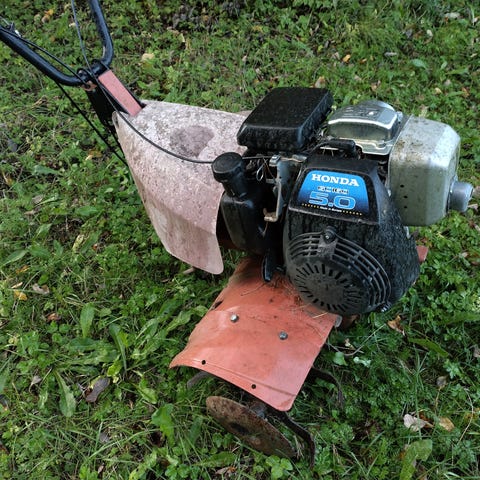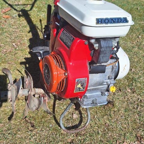 .Tämä on Honda F400 -bensiinikäyttöinen puutarhajyrsin.