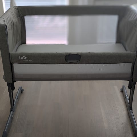 Joie Roomie Glide sivuvaunu/sänky on vanhemman sängyn viereen tarkoitettu sänky vauvalle. Sänky mahdollistaa sen, että vauva on lähellä, mutta sinun ei tarvitse jakaa omaa sänkyäsi hänen kanssaan ja saat ehkä nukuttua paremmin. Pehmeässä ja rätillä pyyhittävissä olevassa sängyssä on helposti yhdellä kädellä säädettävissä oleva verkkokankainen laita, jotta vauvan hoitaminen on helppoa ja vanhemman käden ei tarvitse olla hankalassa asennossa, kun hän mahdollisesti rauhoittelee tai silittelee vauvaa. Sängyn mukana tulee säilytyslaukku.