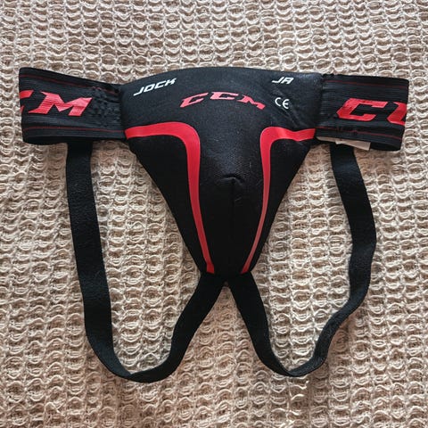 Myydään erittäin hyväkuntoiset CCM JOCK jääkiekko alasuojat kokoa Jr.
