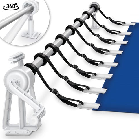 Laite, joka helpottaa pressun avaamista tai rullaamista.. Portaattomasti säädettävä pituus, 1,05-6,15 m.. Kiinteä ankkurointi maahan mahdollista.. Mukana on kiinnityskannattimet maanpäälliseen uima-altaaseen kiinnittämistä varten.. Säänkestävää materiaalia.. Pressu ei ole mukana