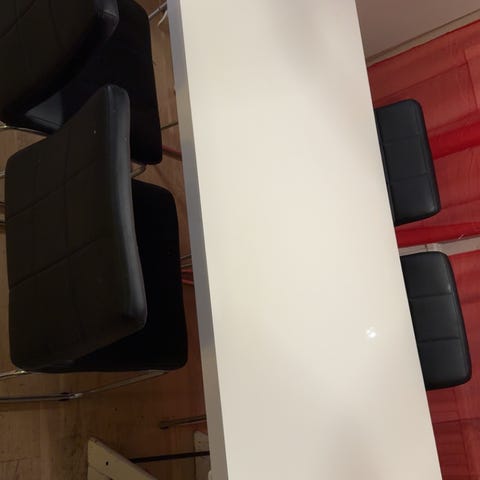 Kuvan valkoinen ruokapöytä. Mitat 17 cm*90 cm.