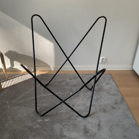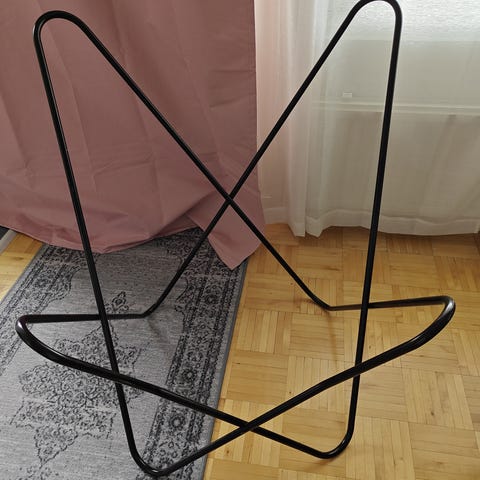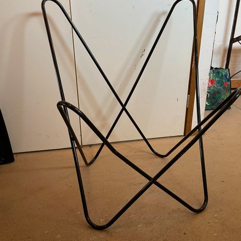Tukeva ja jämäkkä metallinen Varax lepakkotuolin runko. Alkuperäinen musta maali.