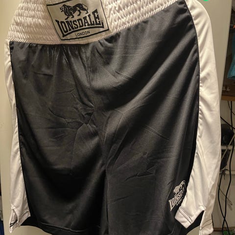 Venum kamppailulajishortsit miehille, koko L. Mustat shortsit, joissa suuret Venum-logot ja joustava kuminauhavyötärö kiristysnyörillä. Soveltuvat kamppailulajeihin, kuten nyrkkeilyyn, potkunyrkkeilyyn ja muihin vastaaviin lajeihin. Materiaali näyttää kevyeltä ja hengittävältä, tarjoten liikkumisvapautta harjoittelussa ja otteluissa.