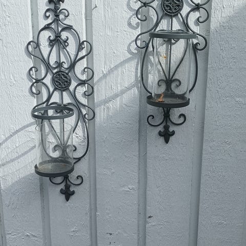 Seinälyhdyt, seinä kiinnikkeillä. Olleet lasitetulla terassilla, suojaisa paikka. 2kpl yhteensä 30