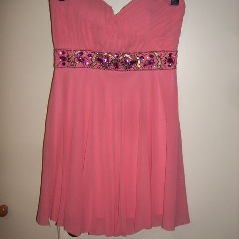 Pinkki hopeakoristeltu juhlamekko. Koko S
