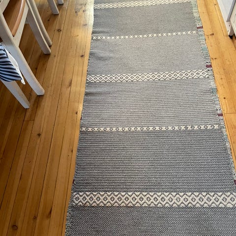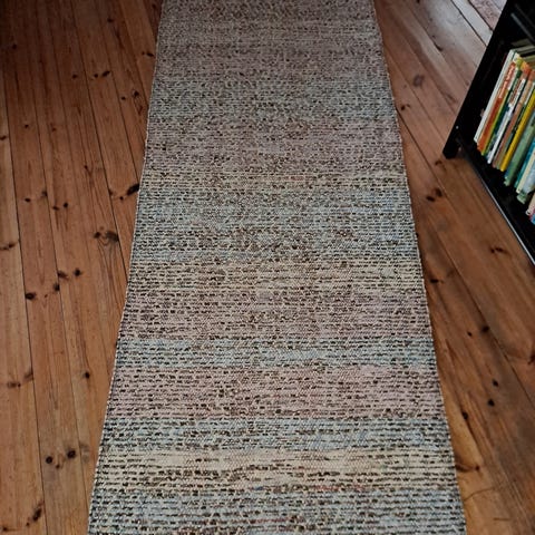 Erittäin hyväkuntoinen pitkä räsymatto.