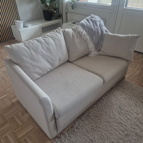 Valkoista nahkaa olevat Furninovan sohvat hyvässä kunnossa. Pituudet 210 ja 175 cm. Syvyys 90. Takapuoli myös tehty ja siisti.