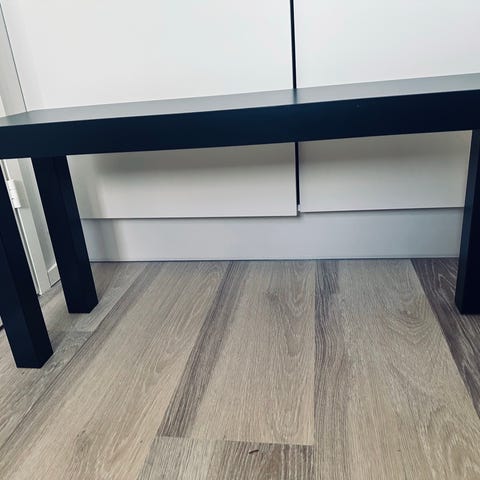 Teak-taso, penkki tai kukkapöytä. Mustaksi maalattu päälliosa. Käytänjälkiä. Vain nouto.