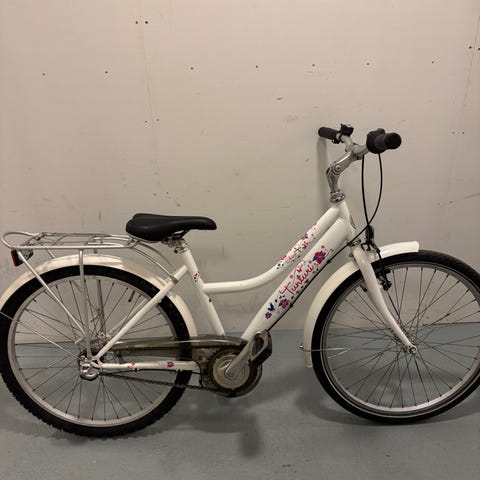 Carraro Pepper lasten polkupyörä 24" renkailla. Polkupyörässä on matala runko helpottamaan kyytiin nousua, jalkajarru takana ja käsijarru edessä. Väriltään pyörä on pinkki valkoisilla ja sinisillä yksityiskohdilla. Varusteina ovat täysikokoinen ketjusuoja, lokasuojat, seisontatuki sekä takatavarateline. Satula ja ohjaustanko ovat säädettävissä ajajan pituuden mukaan.