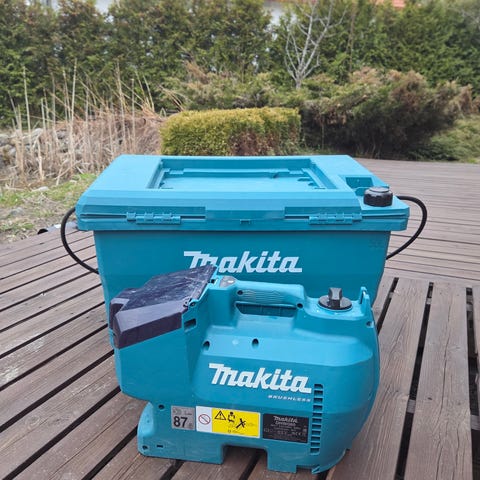 Makita DGV080 akkukäyttöinen painepesuri 18V -järjestelmään. Mukana kaksi 18V 5,0Ah litiumioniakkua sekä Makita DC18SD -laturi. Settiin kuuluu lisäksi Makita-kuljetuslaatikko, letkuja ja kantohihna. Soveltuu nesteiden pumppaukseen ja ruiskutukseen valmistajan ohjeiden mukaisesti, esimerkiksi puutarha- ja puhdistuskäyttöön. Laite on harjaton (brushless) ja toimii Makitan 18V akkujärjestelmällä.eli painepesuri