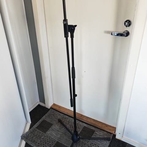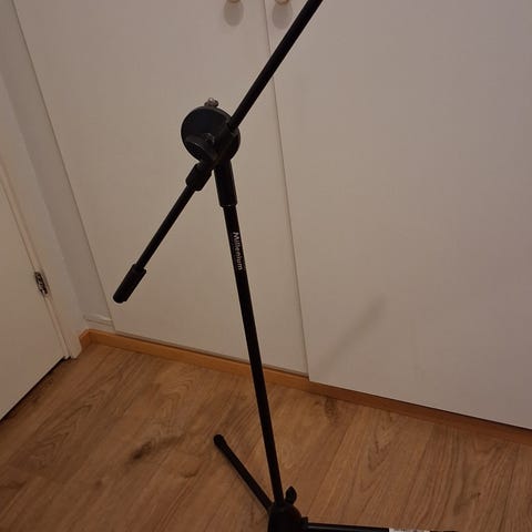 Käyttämätön tukeva mikkiteline, pysyy erittäin hyvin pystyssä.