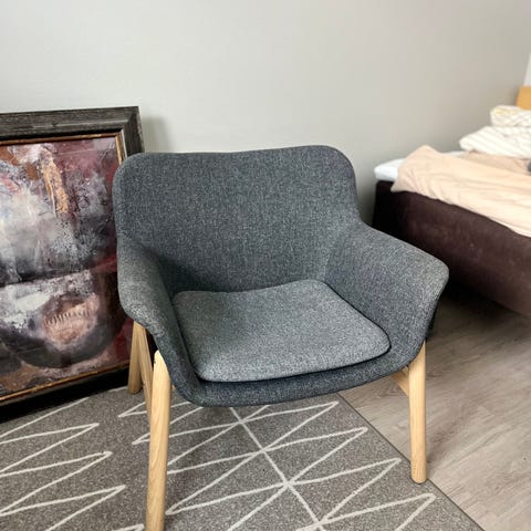 Myydään hyväkuntoinen harmaa Vedbo nojatuoli. Nouto Vantaan Viertolasta.