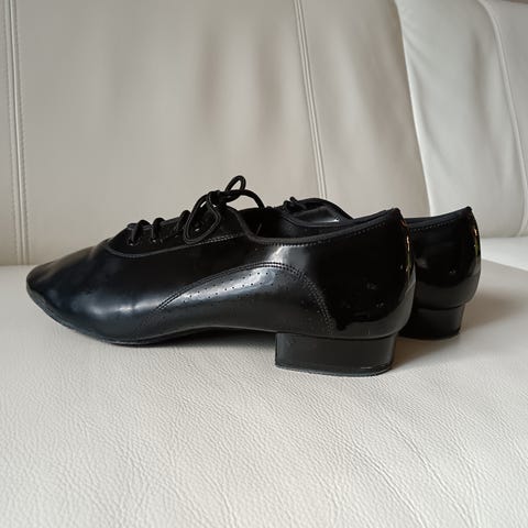 Uudenveroiset kiiltonahkakengät, säämiskäpohja. Koko 9,5. Supadance merkkiset