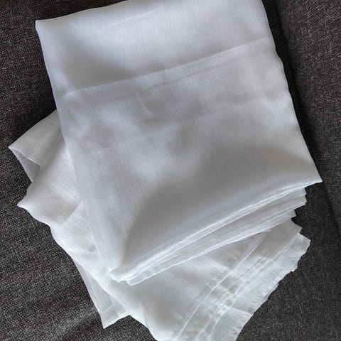 Jysk Storavan verhot, koko 140x245 cm. Väri valkoinen. Verhoissa yläreunassa lenkit ripustamista varten. 2kpl