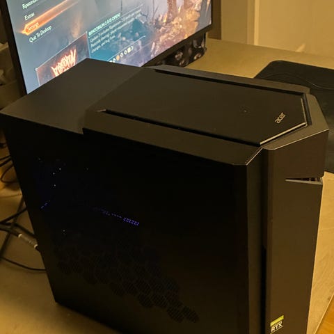 Koneen kylkeen tulee 144hz LEGION pelinäyttö, 60hz samsung näyttö, Corsair näppäimistö, SR7 pelihiiri ja iso hiirimatto. Pöytä myös mahdollista antaa.