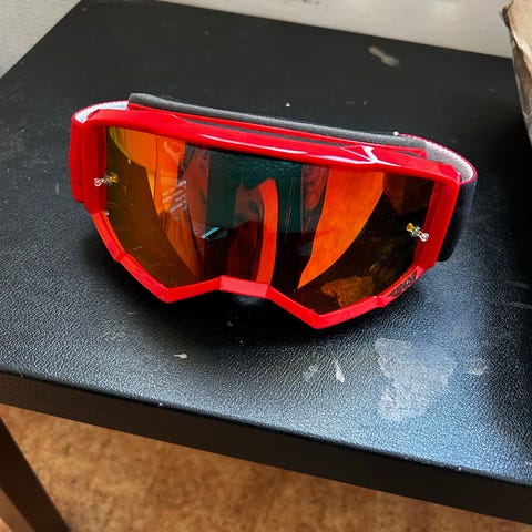 FMF ajolasit punaisella kehyksellä ja joustavalla hihnalla. Läpinäkyvä muovilinssi suojaa silmiä pölyltä ja roiskeilta. Kehyksessä on pehmusteet käyttömukavuuden parantamiseksi. Soveltuvat esimerkiksi motocross- tai muun moottoriurheilukäytön ajolaseiksi kypärän kanssa käytettäväksi.