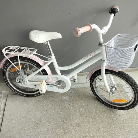 Tunturi lasten polkupyörä, jossa 16" renkaat. Rungon väri on punavalkoinen ja satula harmaa. Polkupyörä soveltuu lapselle, jolle 16" rengaskoko on sopiva. Pyörässä on perinteinen runkorakenne ja jalkatuki pysäköintiä varten. Renkaissa on heijastimet näkyvyyden parantamiseksi.